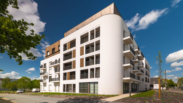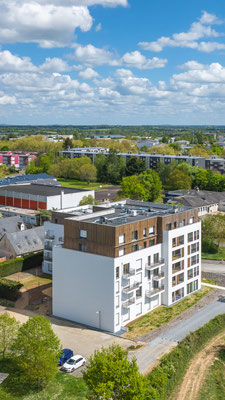 Photographies des résidences récentes à Rennes et alentours pour illustrer la plaquette commerciale du promoteur. Photographies au sol et par drone.